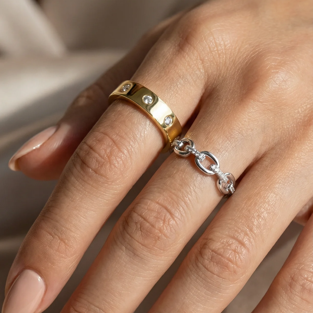 This NicoleHD ring is timeless and exquisitely designed in 14k gold and delicate white diamonds.