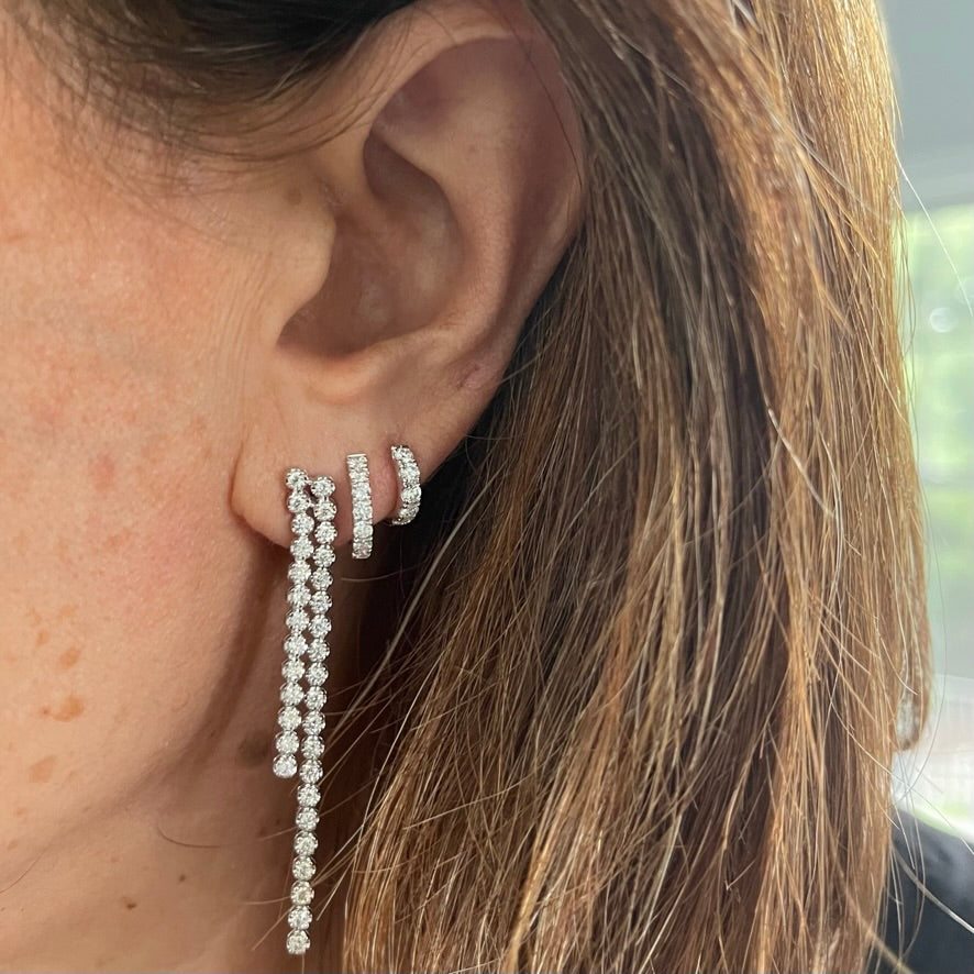 This classic 11mm 18k white gold huggie earring is a staple piece that can be worn in the second, or third hole. Adorned with diamonds, this piece is sure to add elegance to your look.